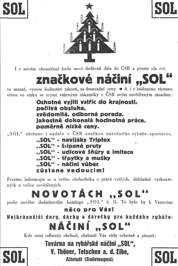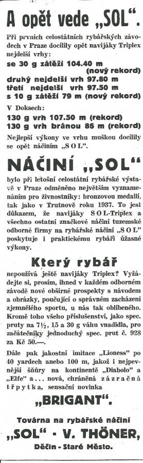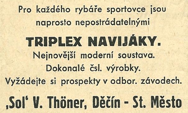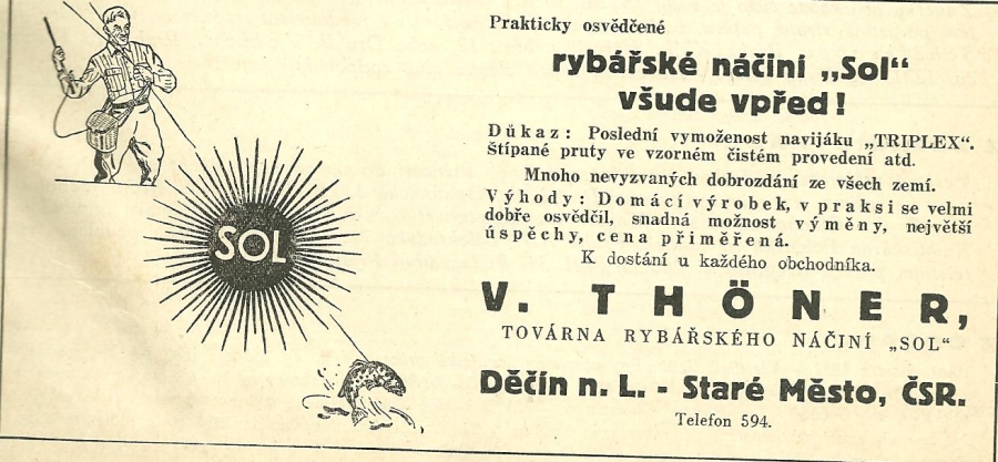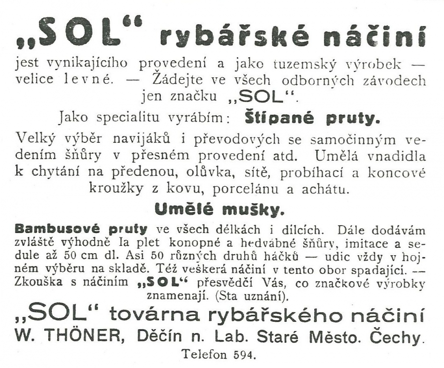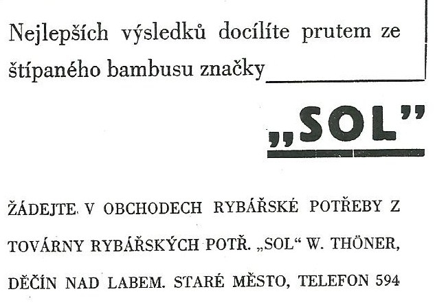 Reklamy firmy SOL Děčín:Antik Rolle und Rute,Old reels and rods.