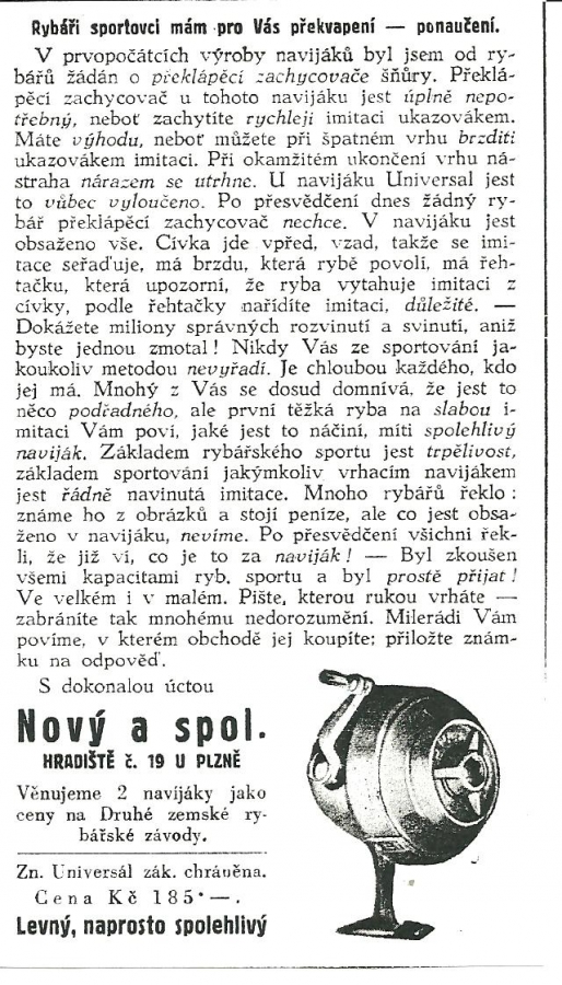 Václav Nový Hradiště u Plzně - reklamy a katalogy:Antik Rolle und Rute,Old reels and rods.